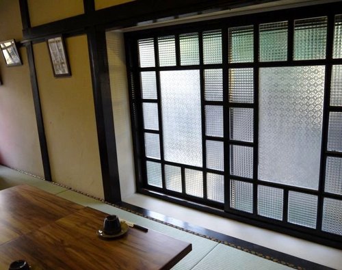 很有復古味的花玻璃,坐在這榻榻米上用餐,感覺也很舒服...