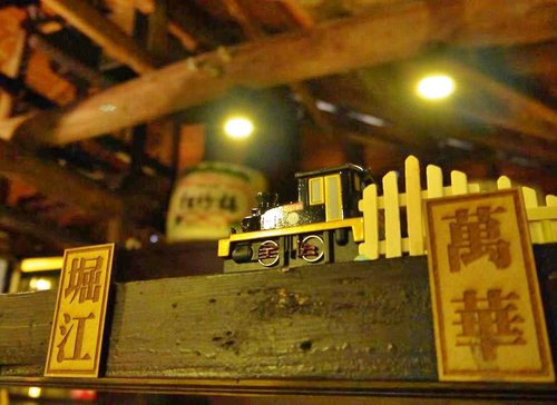 屋簷的橫木上也頗特別,在這述說著這一帶的鐵路故事:1921年萬新鐵路蓋好,從萬華到新店的鐵路,沿著現在的汀州路,後來1965年就拆掉了...