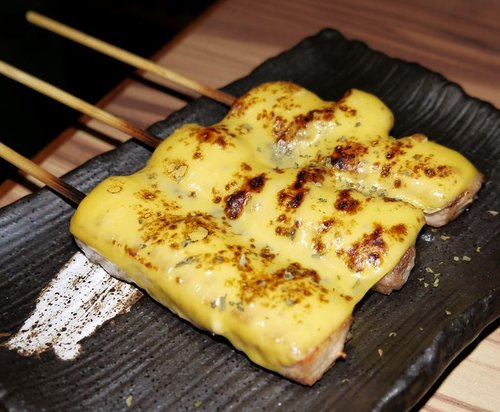起司優酪豬肉串燒(150),帶著淡淡起司香,加入優酪比較不膩吧。豬肉烤的算脆,雖然不多汁。