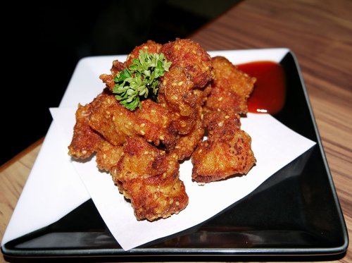 日式炸雞塊(180),炸的水準還可,不會太油膩,沾醬微酸甜。