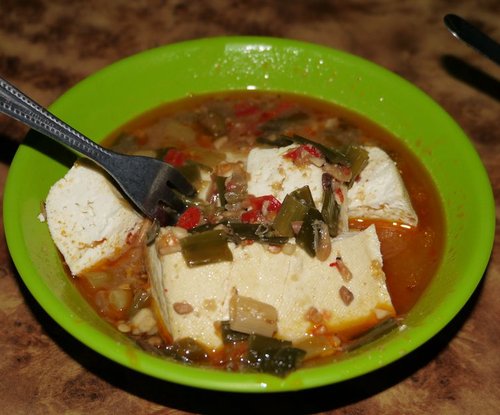 臭豆腐不會太臭,雖然不是煮很久很入味那種,這應該算是板豆腐吧,但沾上一旁的辣醬,味道層次就出來了,辣度尚可。
